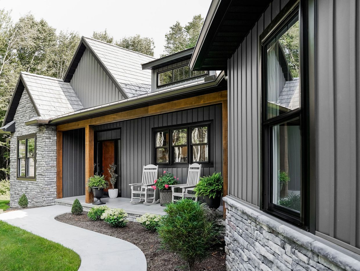 ProVia Endure Double-Hung and Picture Window in Sandstone.